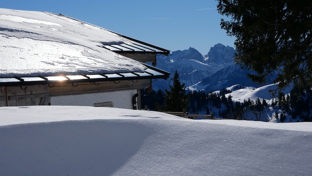 Kurzbeschreibung: windverpresster Schnee welcher auffirnt die Theorie ging sich aus im Schatten noch Pulver.