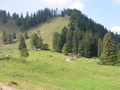 Bei Spätsommerwetter ging's vom Seilbahnparkplatz in Bergen über die Baireralm und Vorderalm auf die Staudacheralm. Die Bedingungen waren sehr gut. Leider war die Sicht nicht so toll, da es etwas dunstig war.
