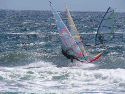 Wie jedes Jahr im Juli ging’s auch Heuer wieder nach GC. Leider war der Wind heuer nicht so zuverlässig wie in den letzten Jahren. Warmer Saharawind bis 45 C° machte den Passat in der zweiten Wochenhälfte das Leben schwer. Die Segelgröße lag Heuer bei 5,0 m2, aber auch das 4,5er und 5,8er mussten aufgeriggt werden. Standardsegel hier normal 3,8 – 5,0m2. Die Windausbeute lag bei 75 %. Gar nicht so schlecht für eine Surfwoche. Aber normalerweise hast du hier im Juli 100 % Starkwind. So war’s zumindest die letzten 3 Jahre. Dennoch war das Bier beim Rolf gut und wir werden auch nächstes Jahr wiederkommen.