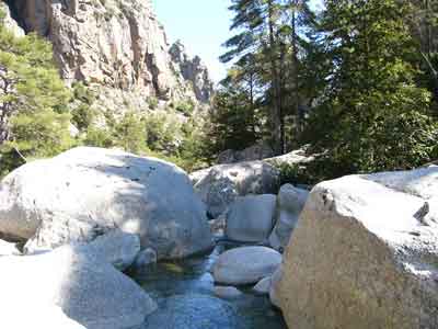 Los geht's in Corte. Wir gehen ca. 2,5 Stunden taleinwärts. Hier erkennen wir vom Weg aus einige herrliche Badegumpen, welche immer wieder durch kleine Pfade zugänglich sind. Nach einigen schönen Badestunden geht's am gleichen Weg wieder zurück. Die Tour ist zwar lang aber Technisch nicht schwer, es sind auch nur ca.400hm zu bewältigen.