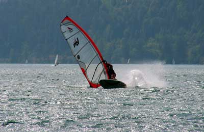 Heute sehr gute Bedingungen am Walchensee. Von 13:00 bis 17:00 gute Thermik. Ich (85 kg) war 2 Stunden mit meinen Tripple X 109 Liter und 7,2 m² draußen. Dabei fast ständig im gleiten. Fast keine Löcher.